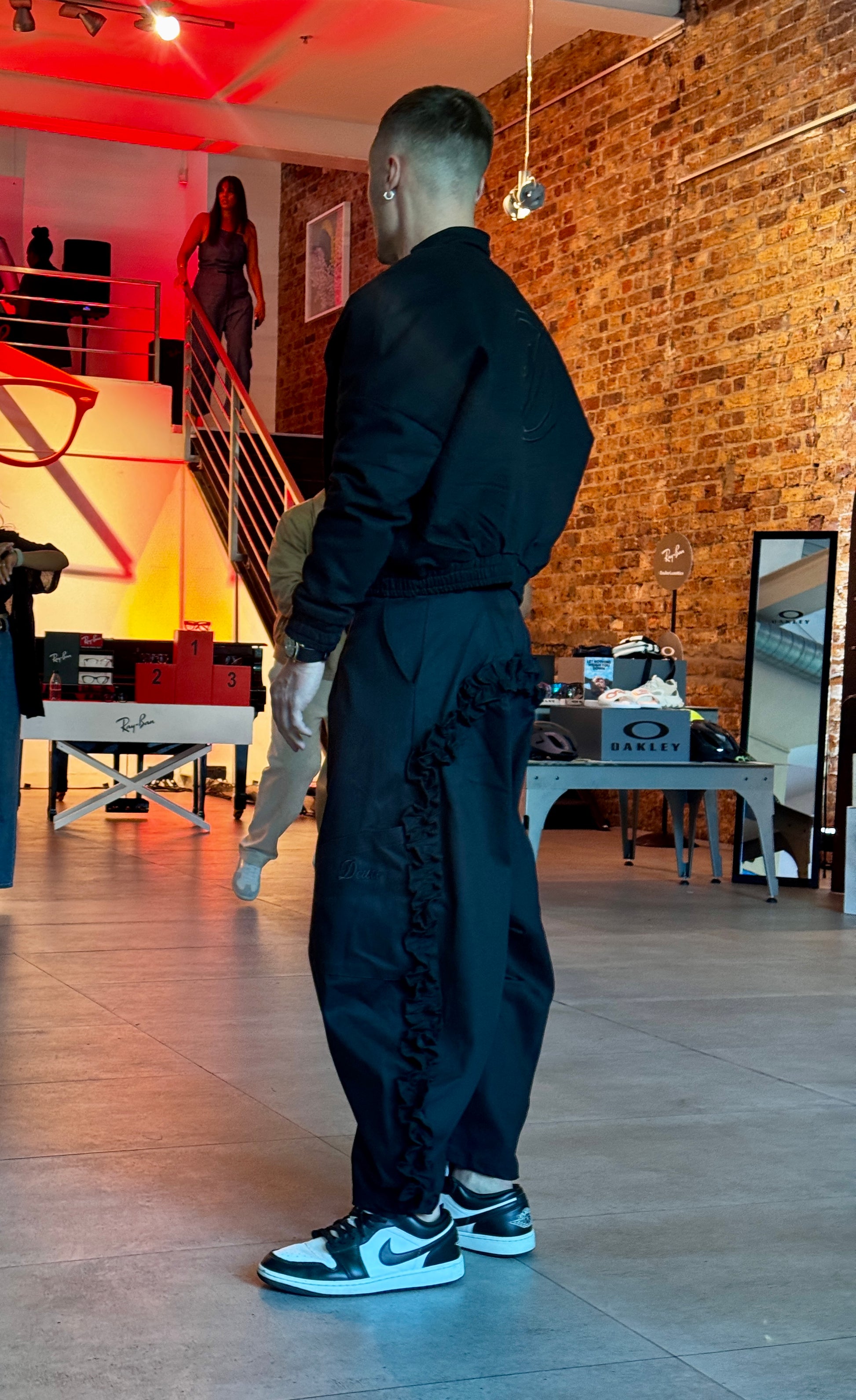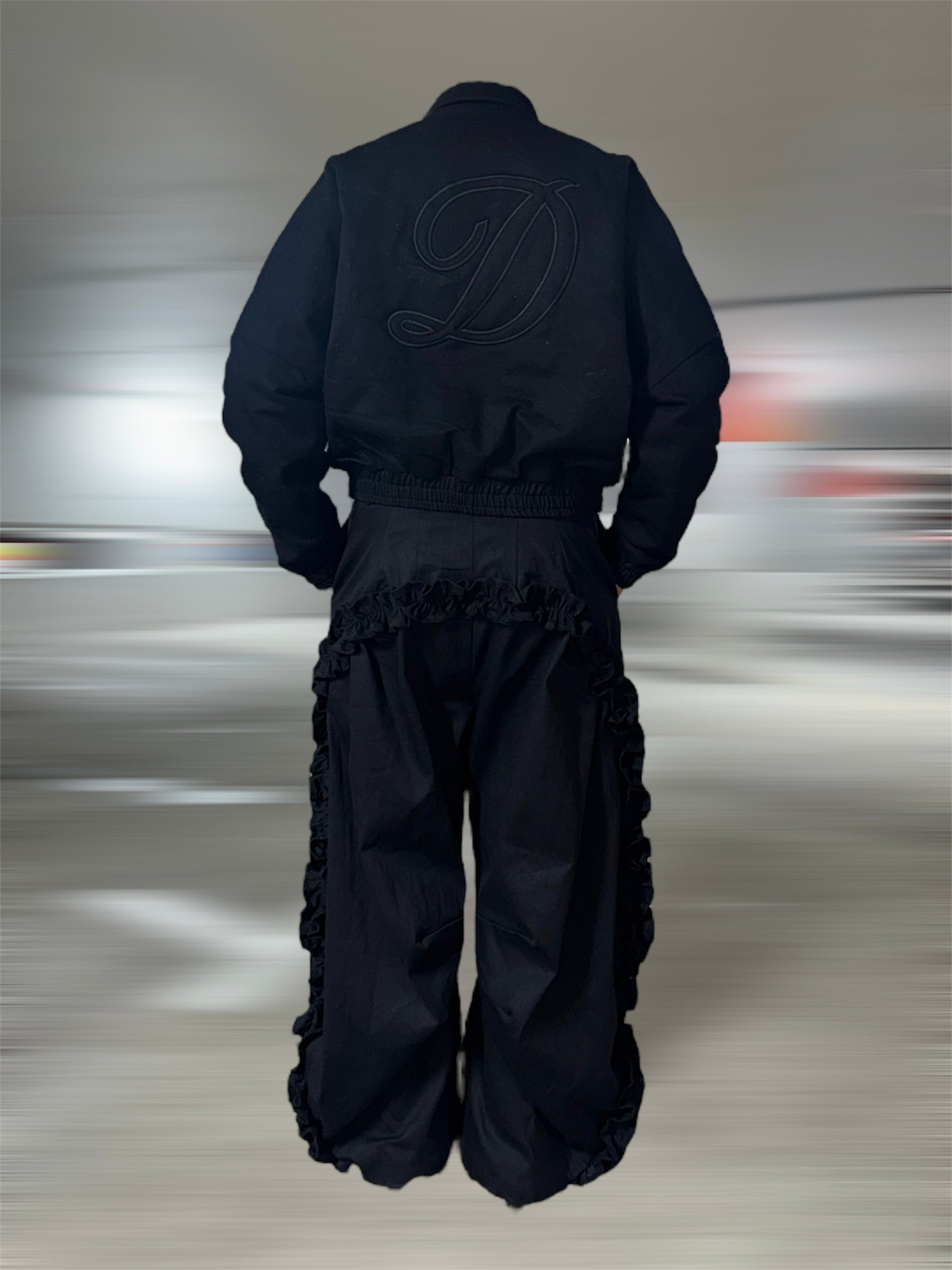 Precision in every stitch, the Flight Mode Trouser is a standout piece crafted from premium Japanese denim. This unisex parachute-style trouser features a show-stopping frill detail that starts at the left leg, sweeps across the back, and wraps around the right side, creating a dynamic, sculptural look. Each pair is meticulously constructed with exceptional craftsmanship, making these trousers unlike anything else in your wardrobe. Style them your way — dressed up, casual, or full denim set with the matching Flight Mode Bomber.